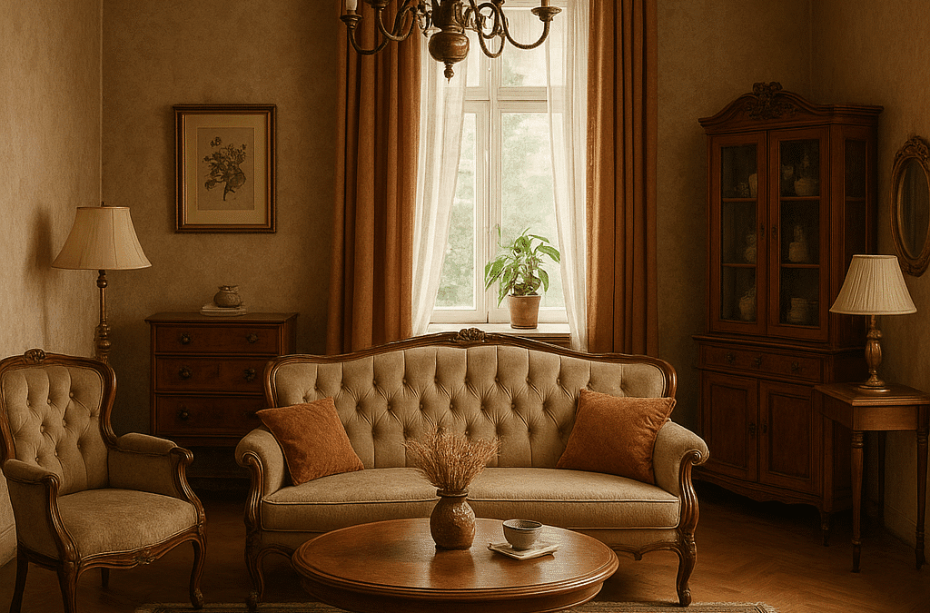 Dodatki takie jak wazony z zielonego szkła, lustra w zdobionych ramach czy małe stoliki kawowe dopełnią całości. Nie zapomnij też o świeżych roślinych – monstery, paprotki czy sukulenty świetnie komponują się z meblami w stylu vintage.
