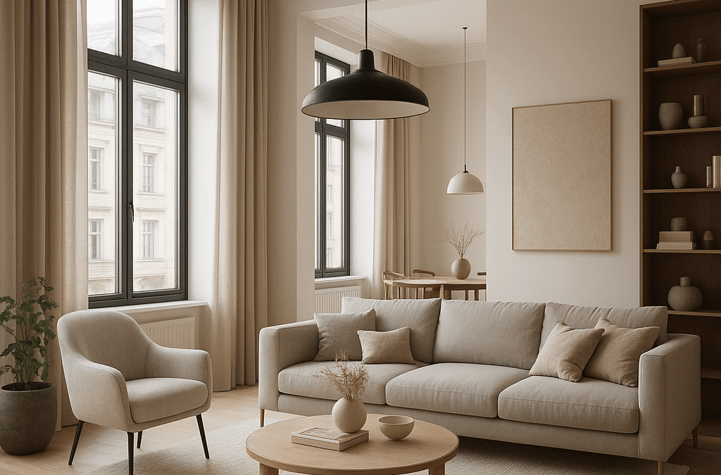 Aby dobrze zaaranżować apartament o wysokich sufitach, warto postawić na proporcje – nie za niskie sofy, rozłożyste fotele i eleganckie komody o większych gabarytach. Dzięki temu wnętrze będzie spójne, a skala mebli dopasowana do wysokości pomieszczenia.