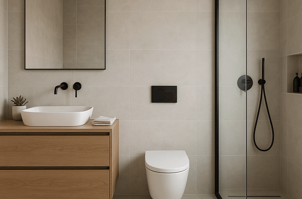- Płytki ceramiczne o dużym formacie – mniej fug, bardziej jednolita powierzchnia.